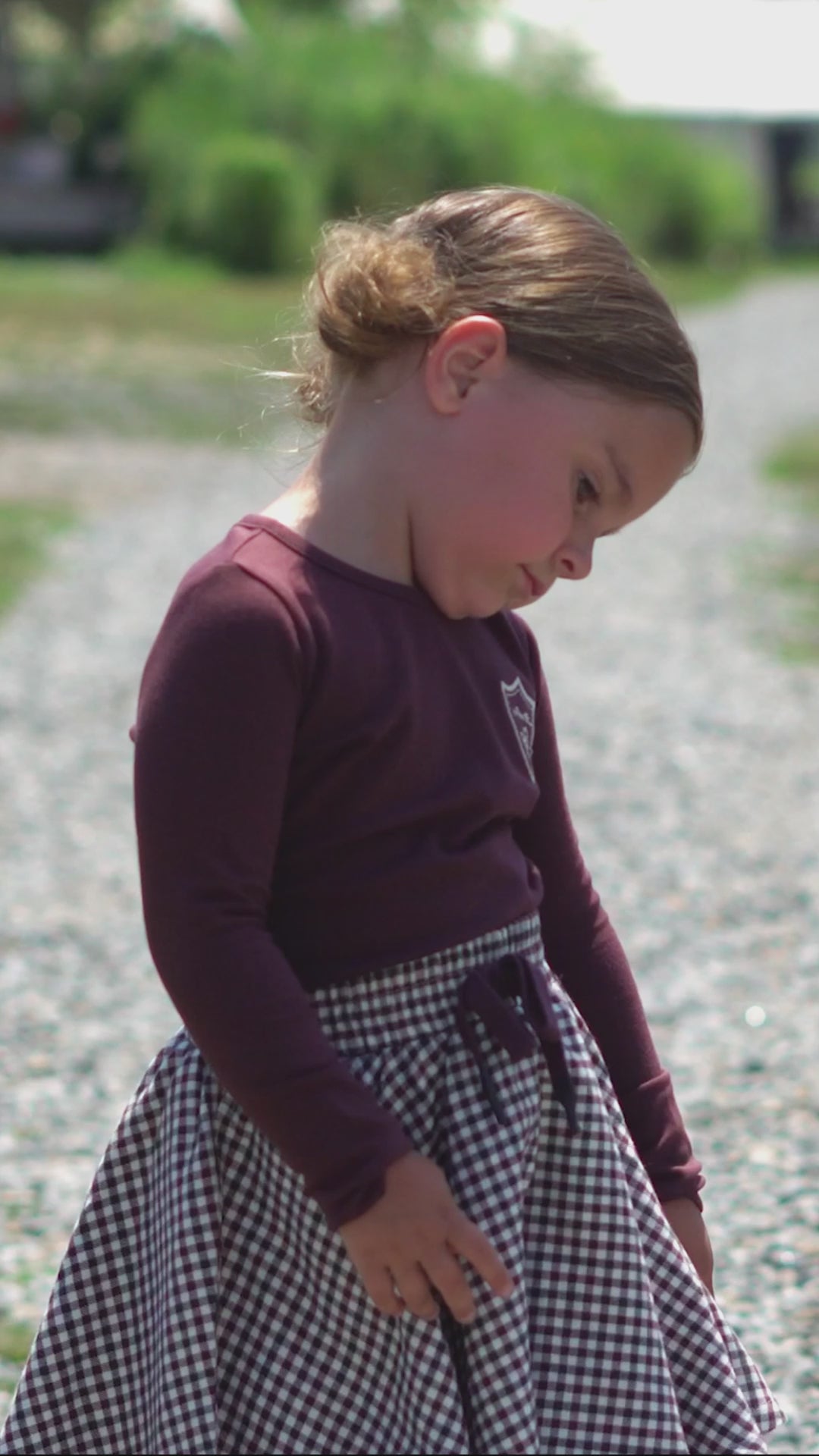 - Color: Cream, Mulberry & Grey Plaid